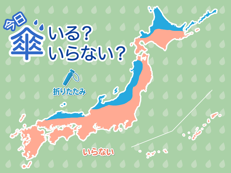 また、本州日本海側も寒気の影響で雨の降る可能性があります。各地、折りたたみ傘があると安心です。