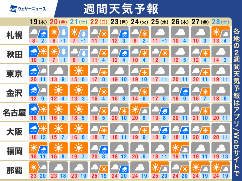 昨日17日(火)は、名古屋でソメイヨシノの開花が発表されました。この先も西日本や東日本で桜の開花が続々と始まる予想で、体感だけでなく視覚でも季節の進みを感じられる一週間となりそうです。