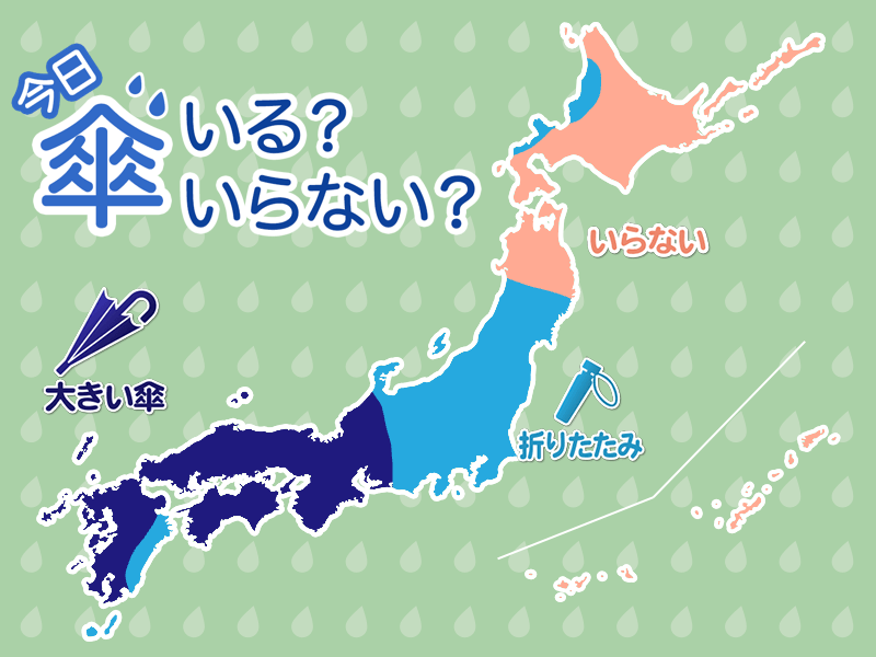 甲信や北陸東部から東北南部は、夜になると雨が降りやすくなります。帰宅が遅い方ほど折りたたみ傘が必要です。