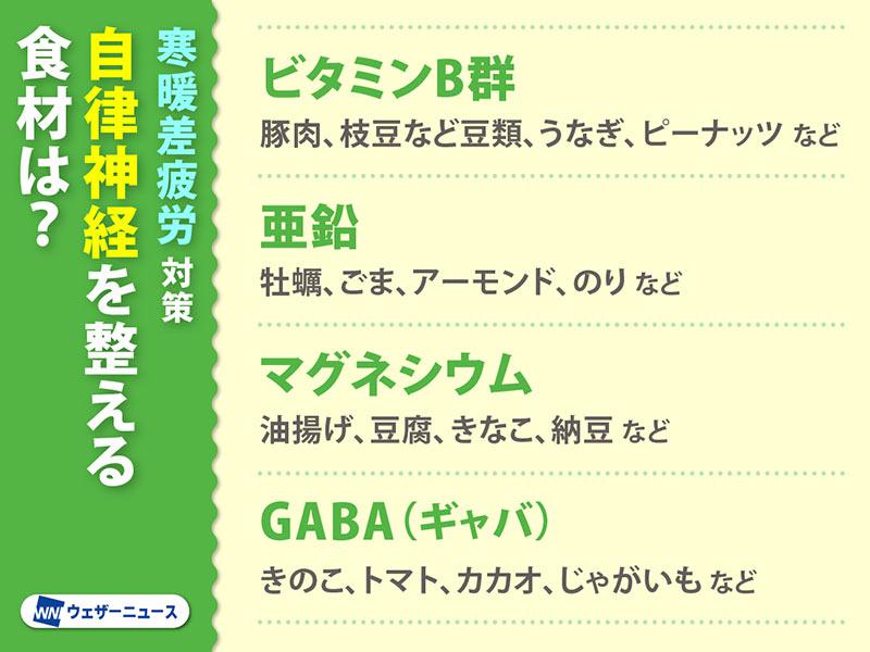 積極的に摂りたいのが、神経細胞に働きかけるビタミンB群、ストレスによいマグネシウムや亜鉛などのビタミン・ミネラル類です。豚肉や豆腐など手軽に摂れる食材も多くあります。