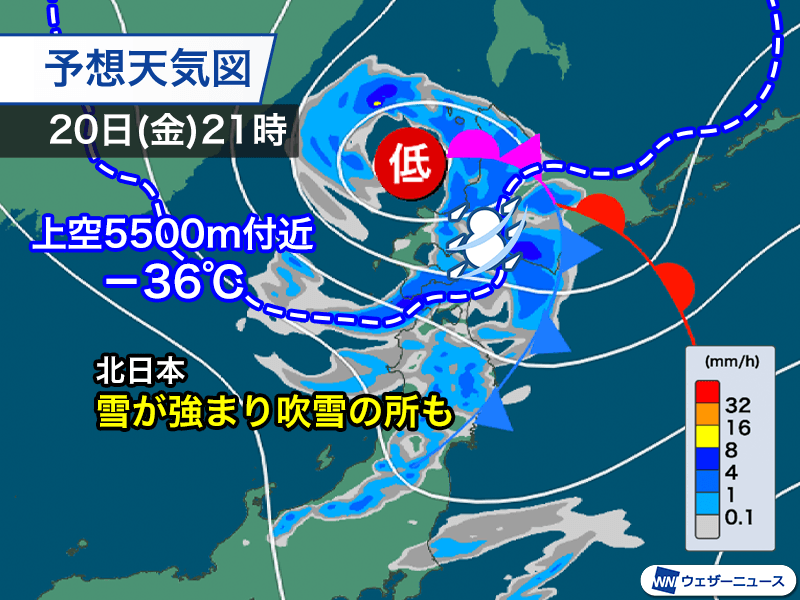 特に明日の夜から明後日21日(土)の朝は雪が強まりやすく、積雪増加による路面状況の悪化や、吹雪による視界不良のおそれがあります。連休を利用して車で移動する場合は十分に注意をしてください。