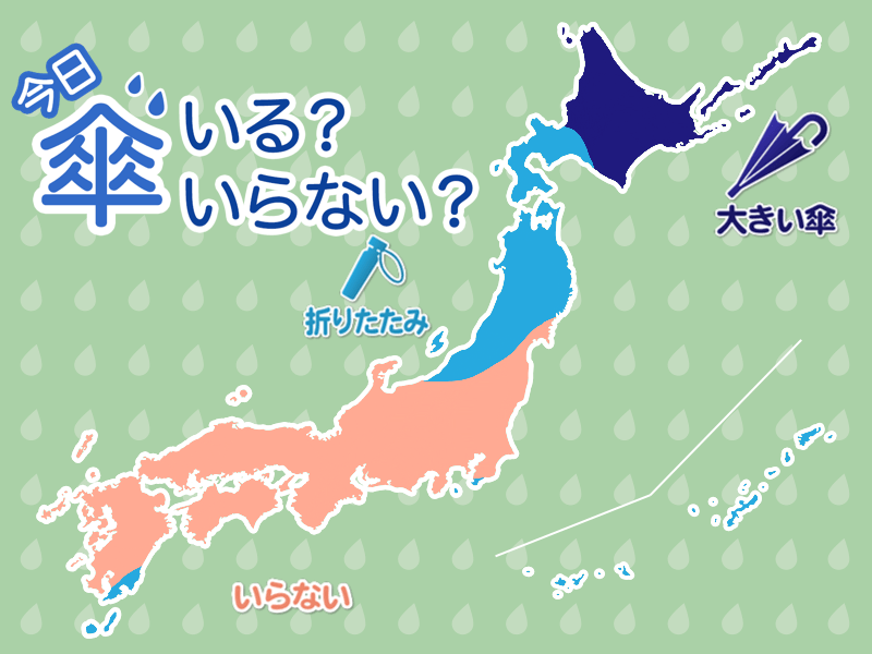 千葉県南部や伊豆諸島、九州南部でも、夜はにわか雨が心配です。帰りの遅い方は念のため、折りたたみ傘があると安心です。