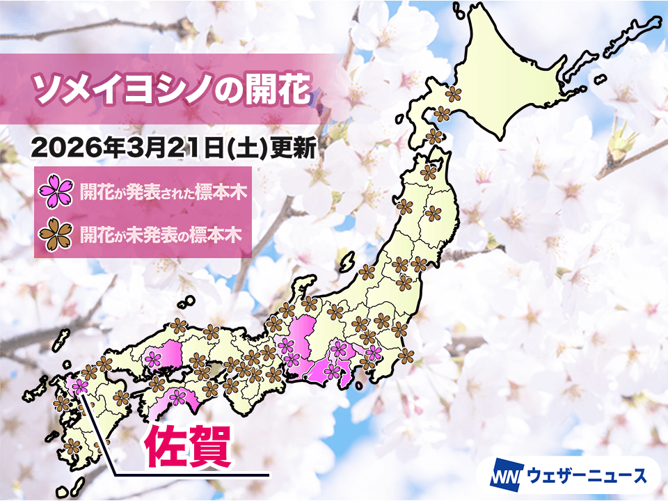 佐賀でソメイヨシノが開花 昨年より4日早い観測