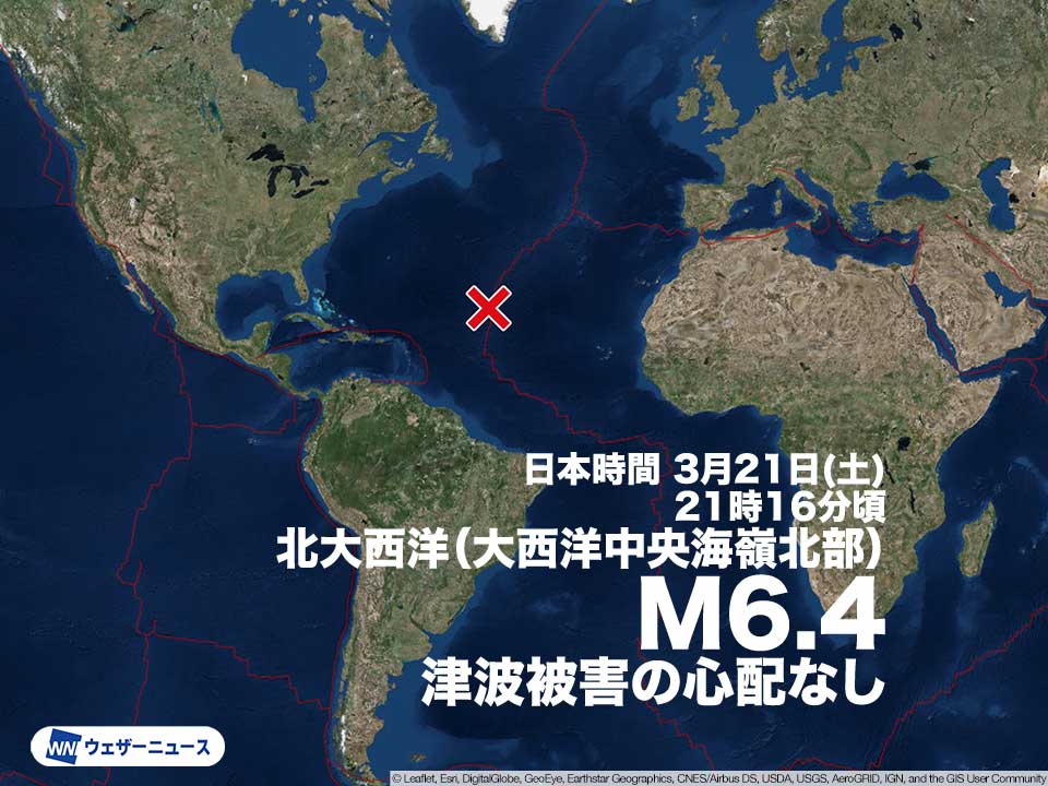 北大西洋でM6.4の地震…