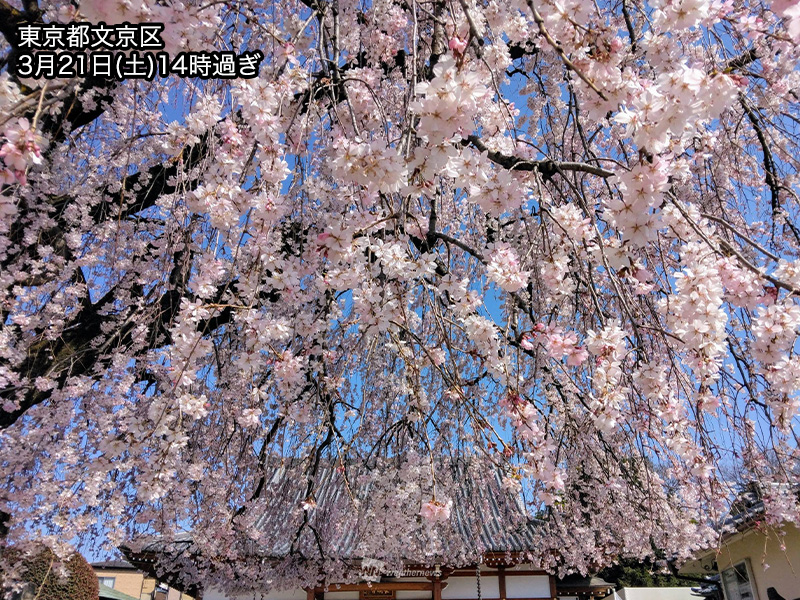 一足早く見頃を迎えているシダレザクラを見に出かけるのも良さそうです。昼間は気温が上がり春の陽気となるため、朝晩との寒暖差に注意して服装で上手に調節してください。