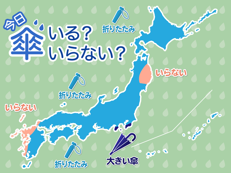 東日本の太平洋側は午前を中心に雨が降ります。ご帰宅時は傘の置き忘れにご注意ください。