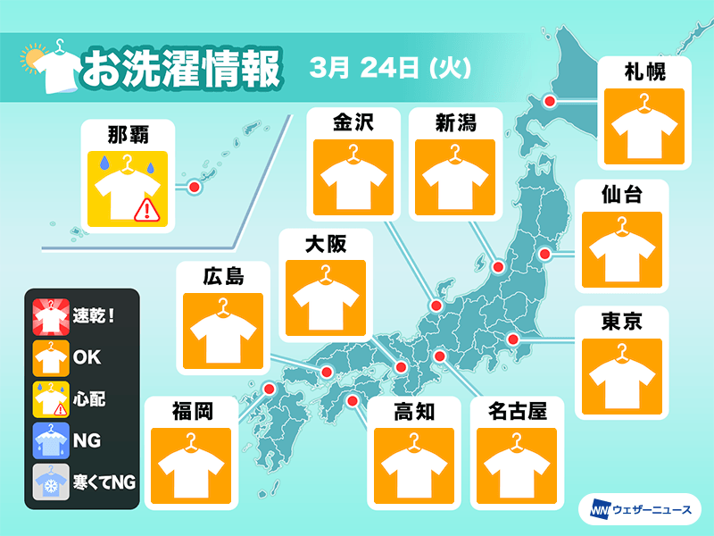 今週は短い周期で天気が変化しますので計画的な外干しが必要です。今日は比較的チャンスな所が多い予想です。ただ、いくつか注意が必要なエリアがあります。