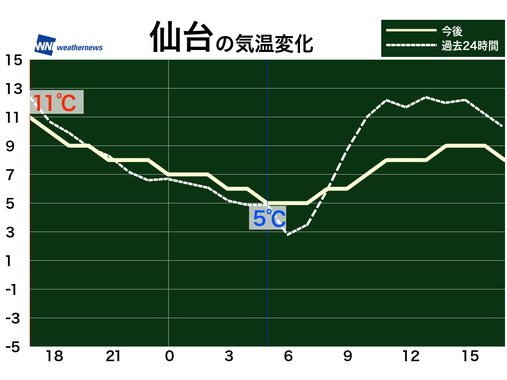 朝は今朝に比べると少し気温が低く、昼間はほとんど横ばいとなります。