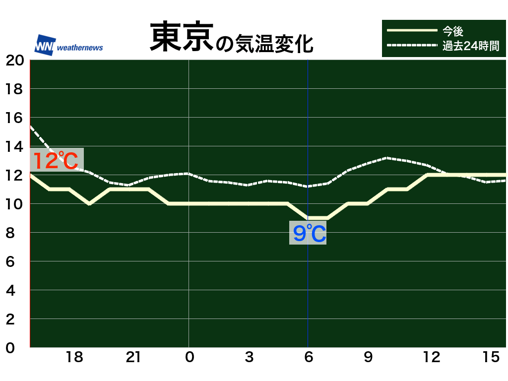 雨が降る昼間は気温が今日に比べ大幅に低く寒くなりそうです。冬物の上着をご用意ください。