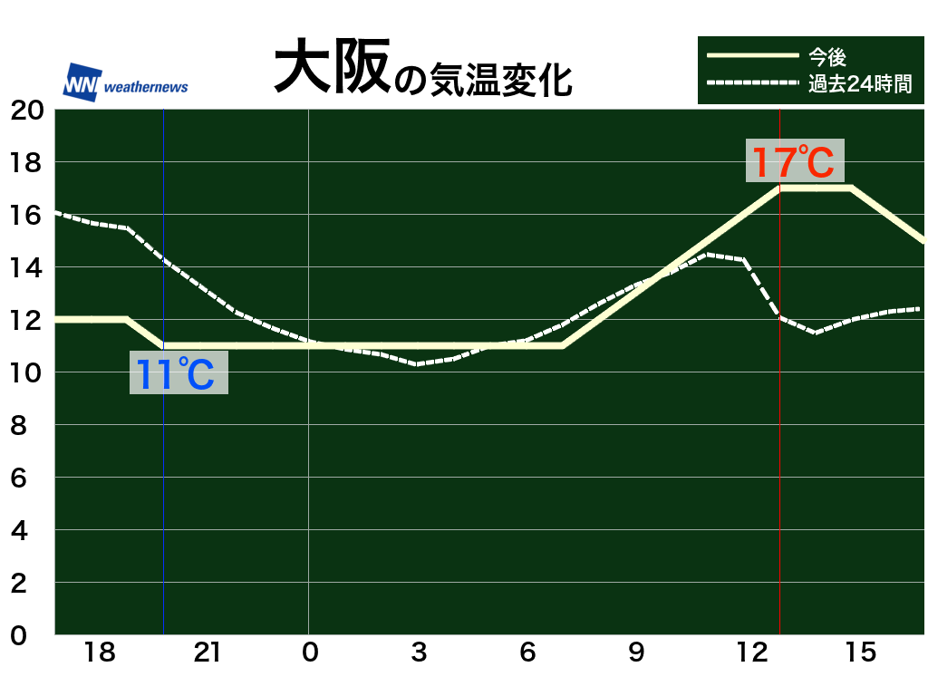 朝の気温は今朝と大きく変わりません。昼間は日差しが戻って今日よりも大きく気温が上昇。暖かくなりそうです。
