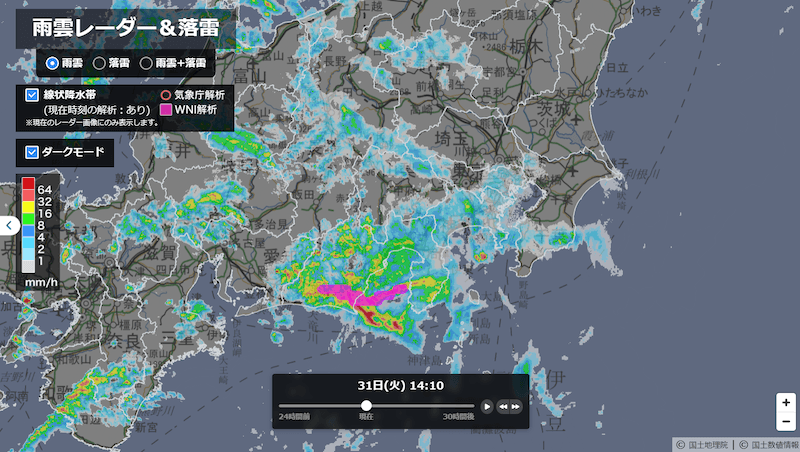 紀伊半島から静岡へ、活発な雨雲が連続発生