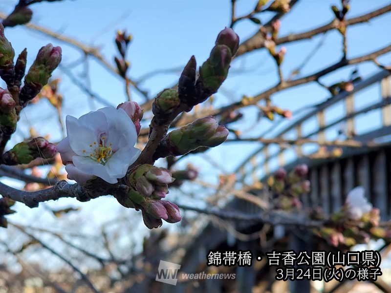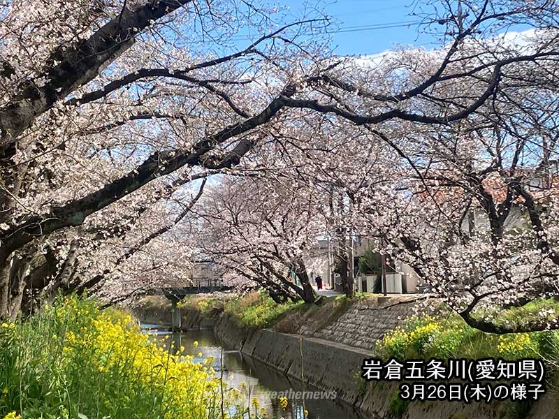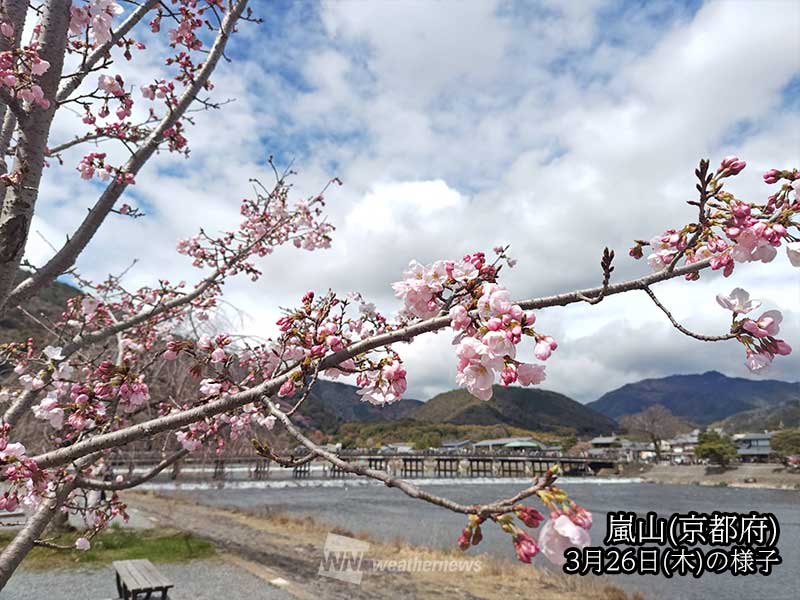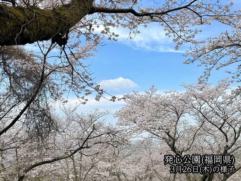 28日(土)は高気圧に覆われて広く晴れます。29日(日)は西から前線が接近して雲の多い天気になるため、週末のお花見は土曜日がオススメです。