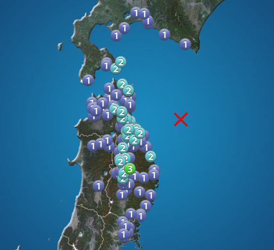 3月26日(木)16時37分頃、岩手県で最大震度3を観測する地震がありました。震源地は青森県東方沖(あおもりけんとうほうおき)で、震源の深さは約40km、地震の規模(マグニチュード)は4.7と推定されます。この地震による津波の心配はありません。