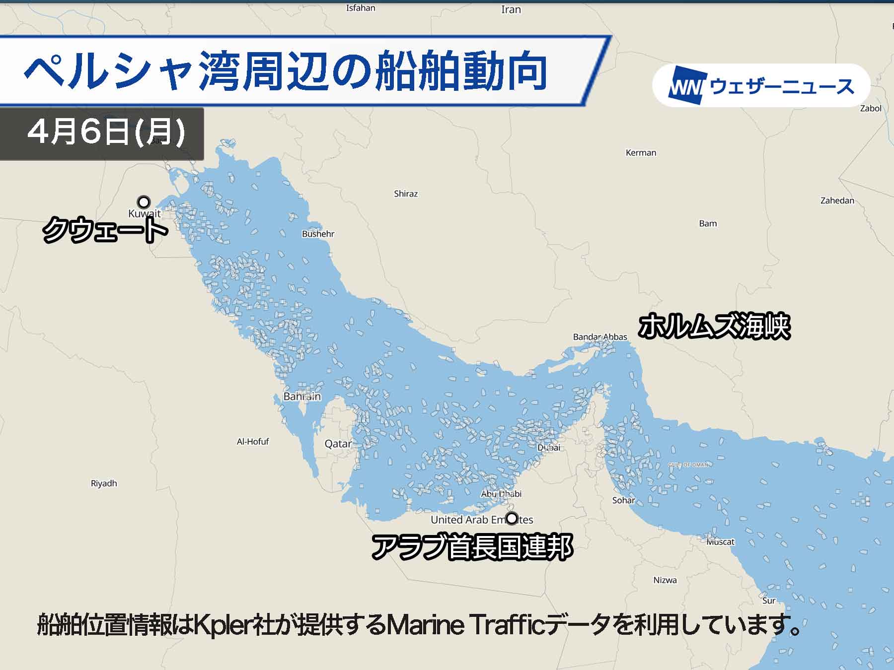 ペルシャ湾付近に大型船舶「600隻」 を確認