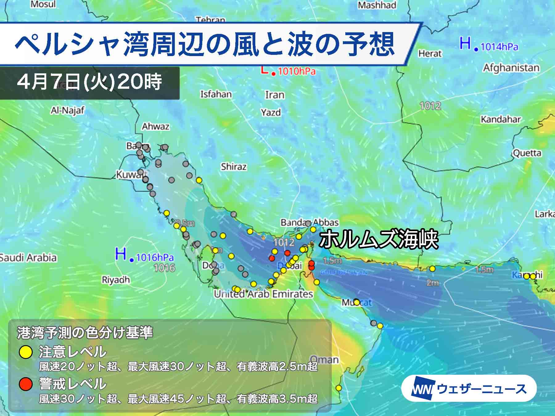 現在、海運・港湾関係者の安全支援のため、ウェザーニューズ航海気象サービス『SeaNavigator』を通じて中東地域の港湾予報を公開しております。