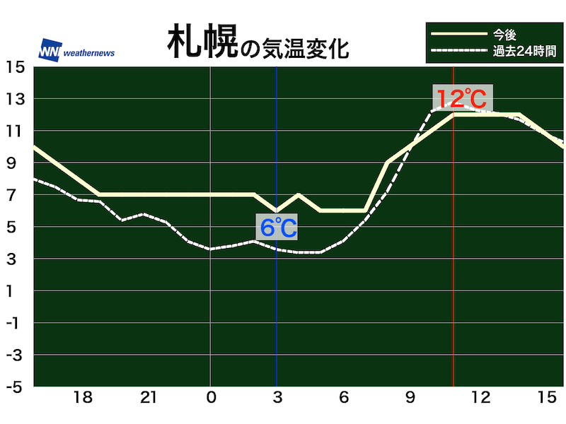 朝の気温は今朝より大幅に高く、昼間も高いまま推移します。