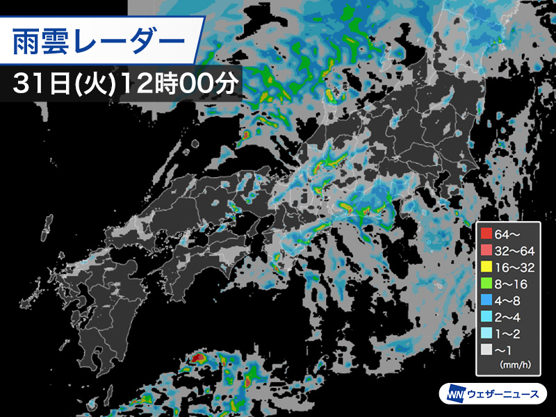 低気圧通過で広範囲に雨 非常に激しい雨のおそれ