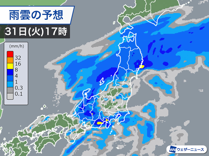 東海や関東、北日本でも本降りに