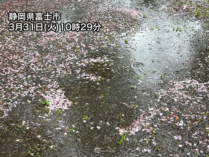 また、各地で南寄りの風が強く、特に北陸では瞬間的に25m/sを超えるような風が吹き荒れています。富山市では9時27分に26.3m/s、福井県敦賀市では9時53分に25.1m/sの最大瞬間風速を観測しました。