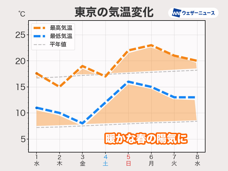 この晴天は長続きしない予想ですので、洗濯物の外干しや布団干し、お花見、記念写真撮影などはこのタイミングに合わせるのが良さそうです。