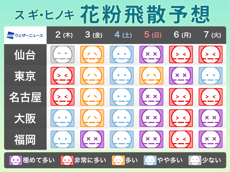 一方、雨上がりや気温が上がるタイミングでは、スギ・ヒノキ花粉が大量に飛散しやすくなります。お花見などで外出する際は、マスクやメガネを着用したり、帰宅時によく衣服をはらうなど万全の対策を行いつつ、春のひとときをお楽しみください。