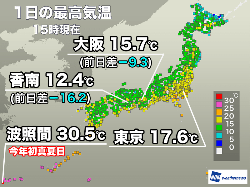 沖縄で今年全国初の30℃を観測 西日本は昨日よりも大幅に気温低下