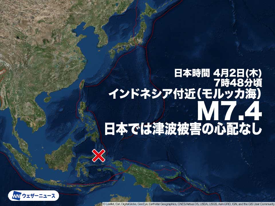 インドネシア付近でM7.6の地震 日本では津波被害の心配なし