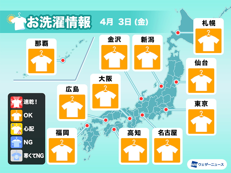 梅雨のように雨の日が多い今週ですが、今日は貴重な洗濯日和となりそうです。週末は再び天気が崩れるので、日差しの有効活用がおすすめです。