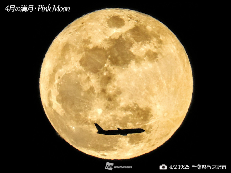 農事暦(The Old Farmer’s Almanac)によると、アメリカでは4月の満月を「ピンクムーン(Pink Moon/桃色月)」と呼ぶようです。シバザクラのような鮮やかなピンク色の花が咲く頃という意味だそうで、実際に月がピンク色に見えるわけではありません。