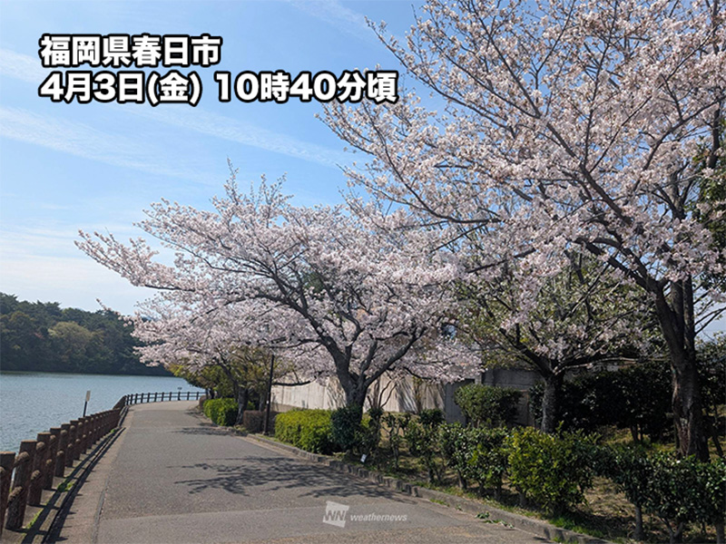 福岡など九州では日差しが届き、満開を迎えた桜が良く映えています。