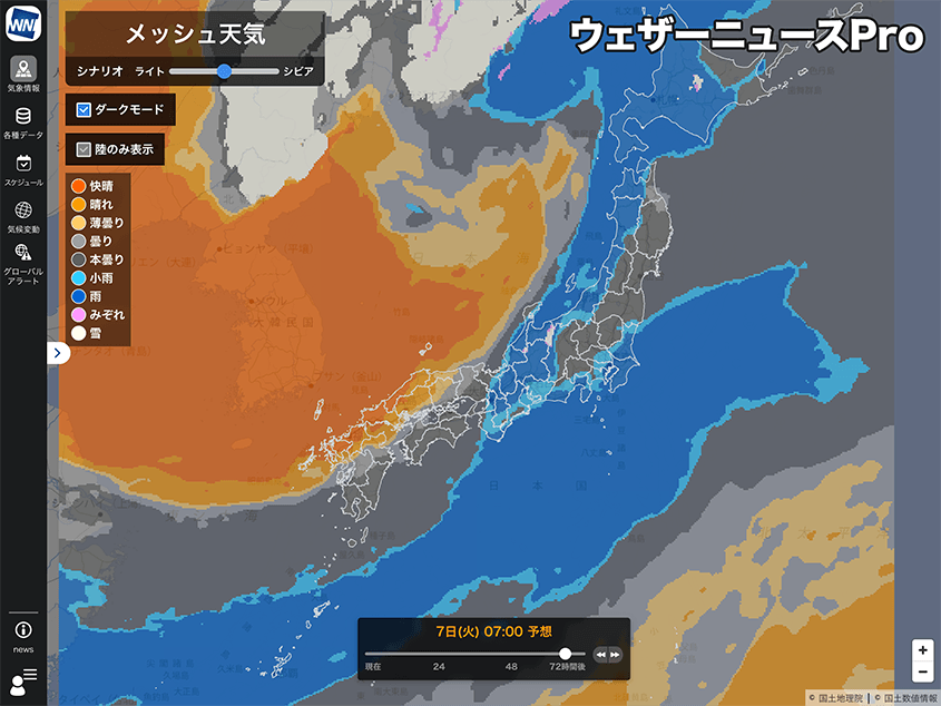 ウェザーニュースPro「メッシュ天気」7日(火)朝7時の予想