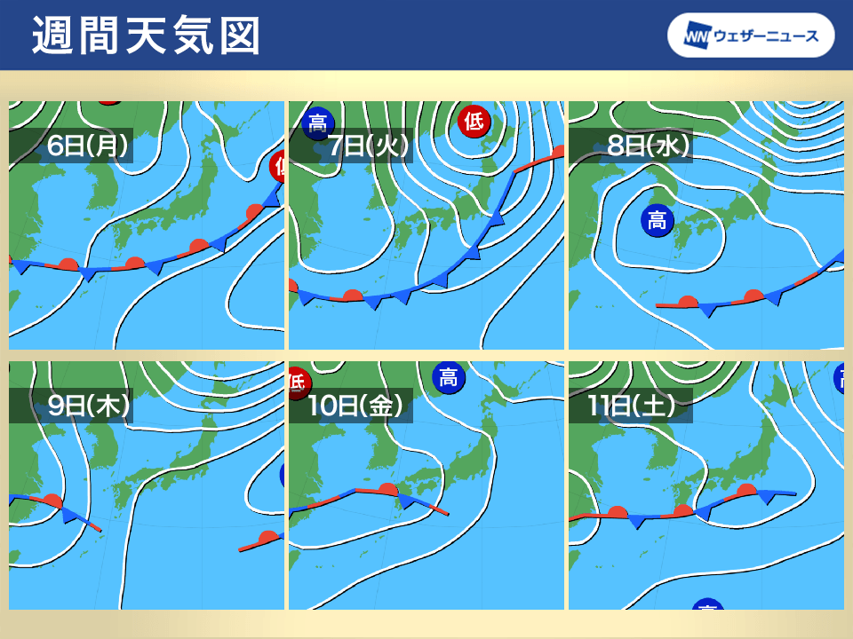 また、7日(火)は北海道や東北日本海側、北陸でも雨の降るところが多い予想です。