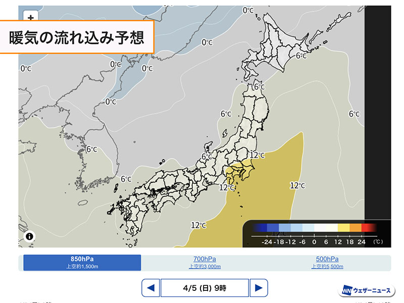 各地、昨日との体感差が大きくなるので、服装選びに失敗しないようにしてください。山沿いでは融雪災害にお気をつけください。