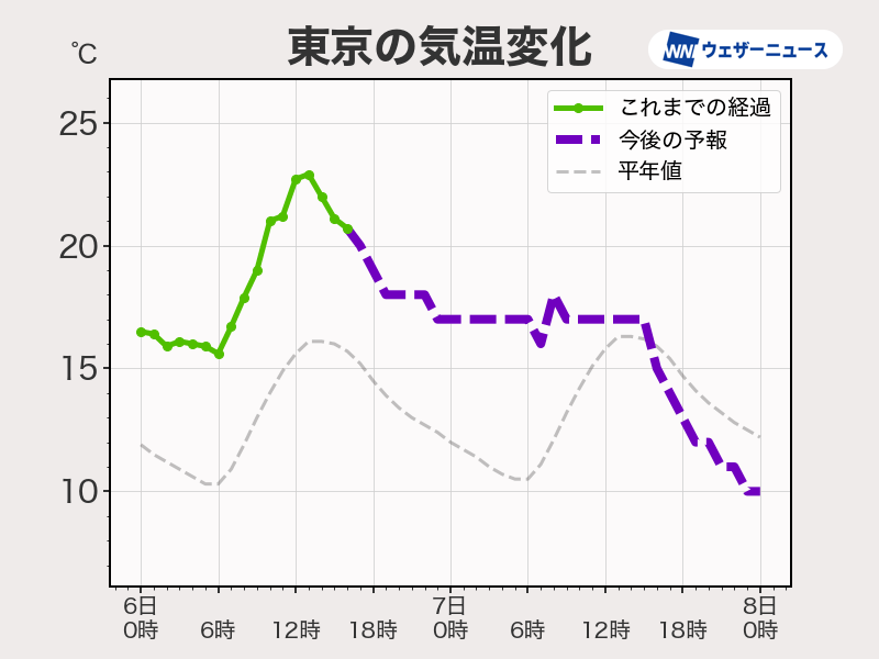 季節先取りの暖かさは落ち着き、夜は朝より冷える所が多い見込みです。
