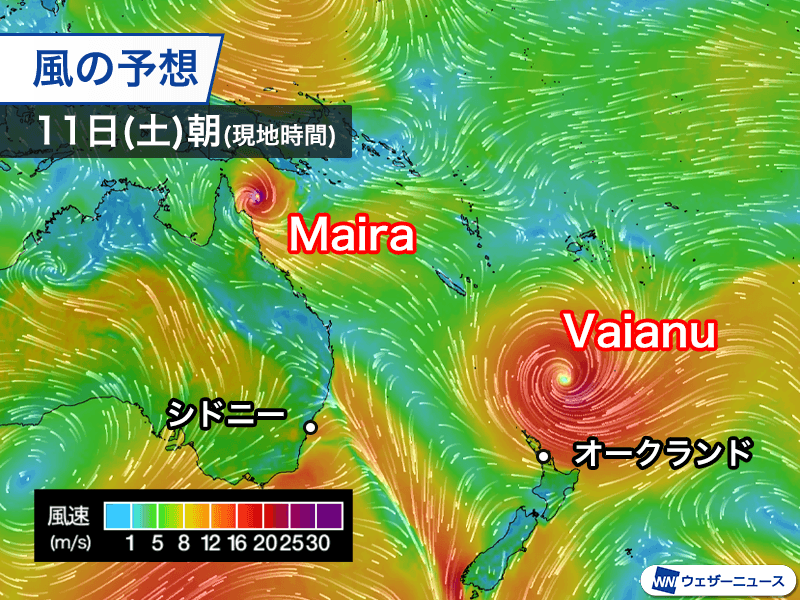 Vaianuはしばらく勢力を維持し、温帯低気圧に性質を変えながらニュージーランドの北島に近づく見通しです。12日(日)は荒天となるおそれがあり、気象当局は雨量が警報基準に達する可能性があるとしています。