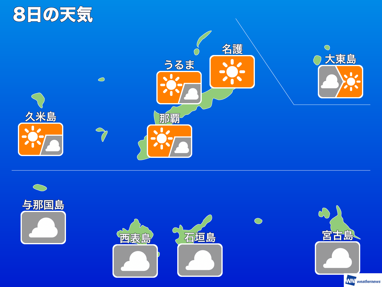 先島諸島は前線の影響で雲が広がりやすく、すっきりしない天気が続きます。