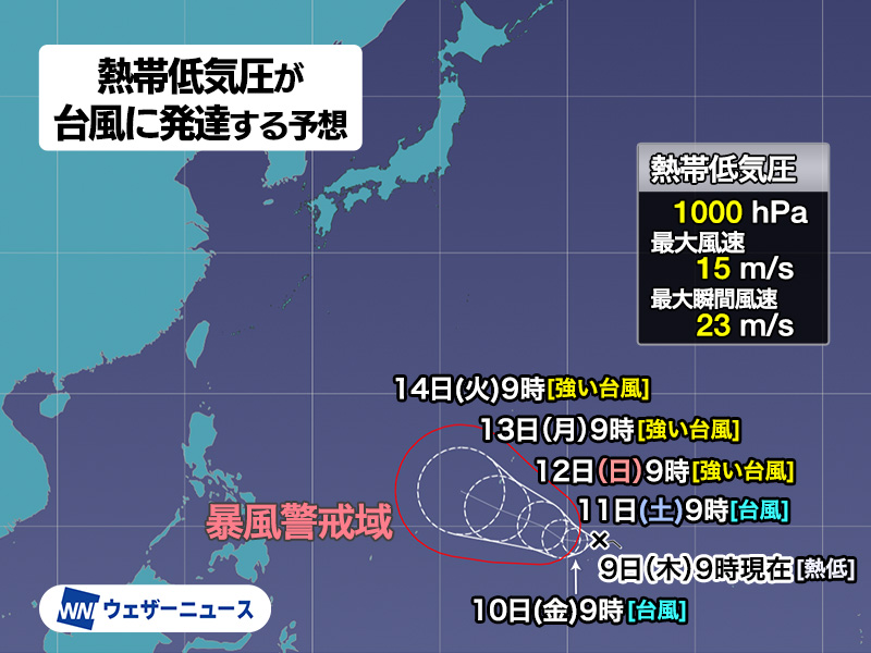小笠原諸島などの天気に影響する心配もあり、今後の情報にご注意ください。