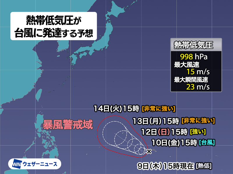 小笠原諸島などの天気に影響する心配もあり、今後の情報にご注意ください。
