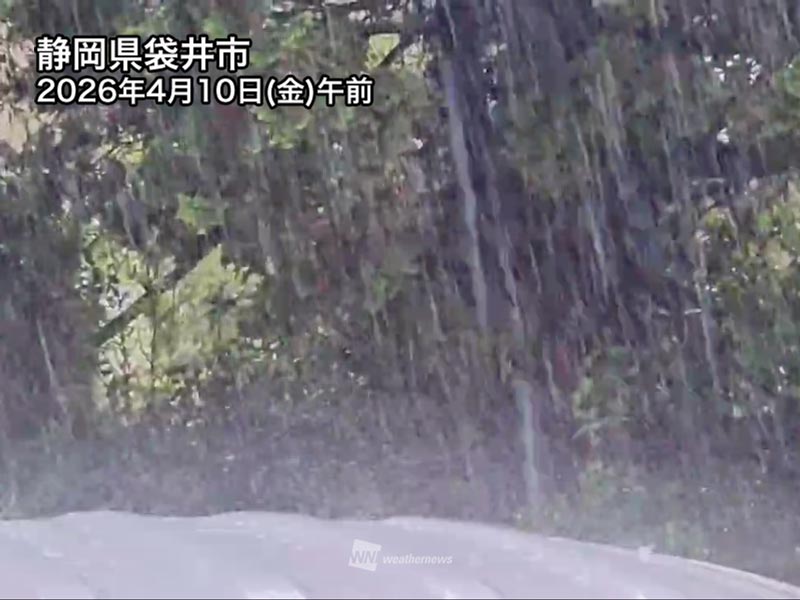 昼間は四国から紀伊半島、東海にかけても発達した雨雲が広がっています。11時までの1時間には、高知県繁藤で20.5mm、静岡県の掛川で19.5mm、浜松で16.5mmの雨量を観測するなど、四国から東海の広い範囲で雨が強まっています。