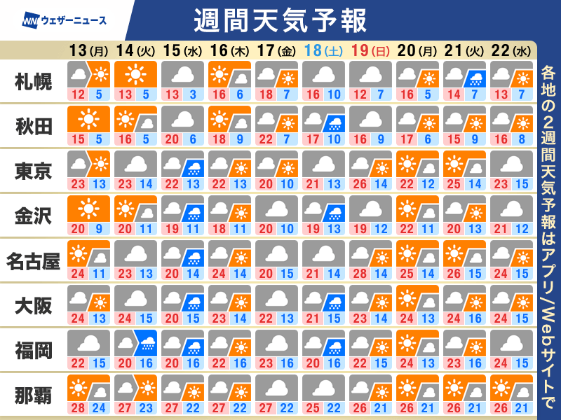 この暖かさにより桜の生長が進み、東北では桜が見頃を迎えています。来週末にはいよいよ北海道にも桜前線が上陸する見込みです。お近くの桜の様子を見に行ってみるのも良いかもしれません。