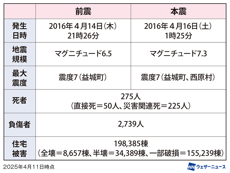 さらに「災害が原因で死亡したと認められた」災害関連死が2025年4月11日時点で225人と、直接死の4倍を超えています。このほか2016年6月に発生した豪雨による被害のうち、「熊本地震との関連が認められた」死者も5人となっています。