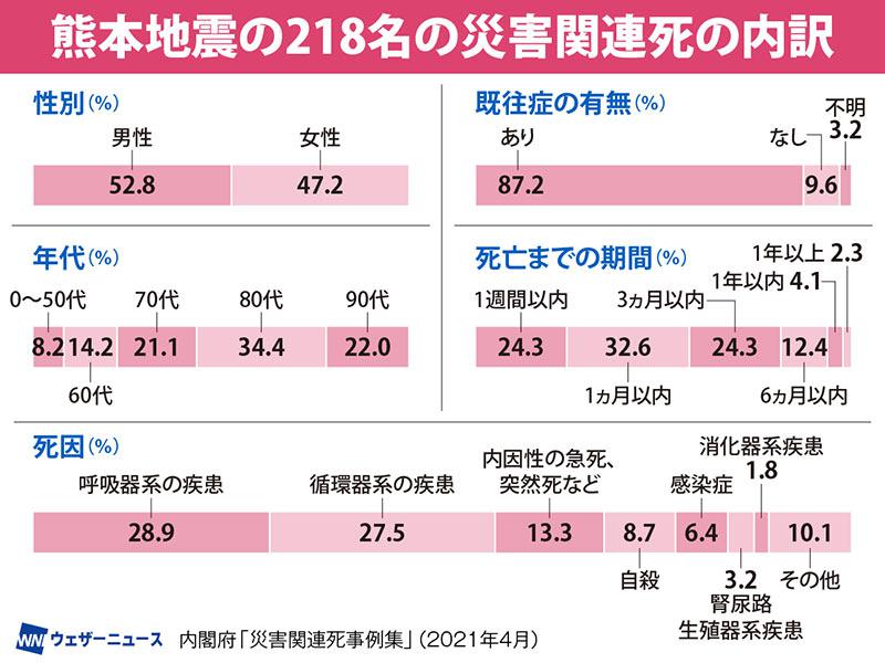熊本地震の「災害関連死の概況」では、呼吸器系の疾患によるものが多いことが報告されています。