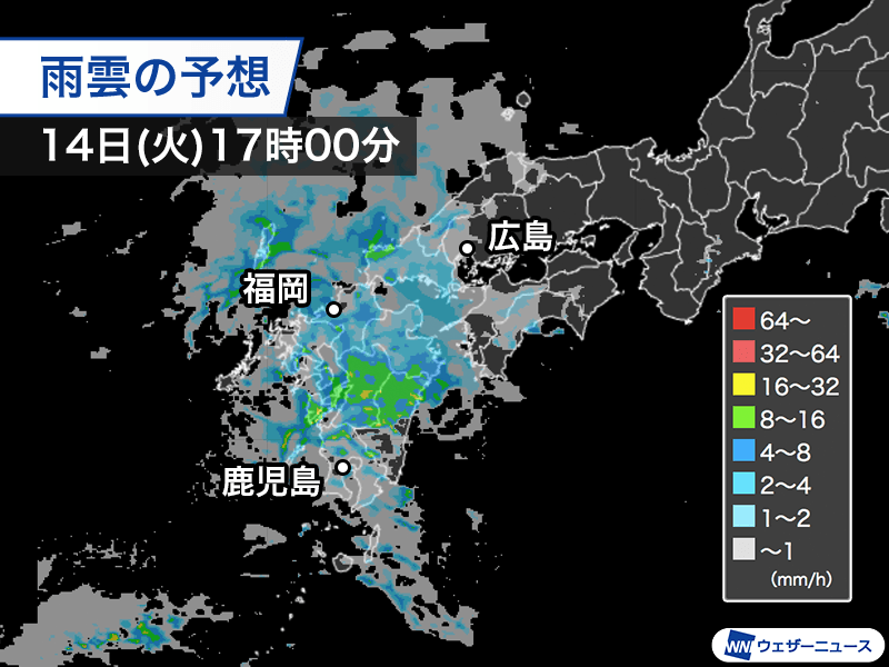 明日の帰宅時間帯は九州で本降り