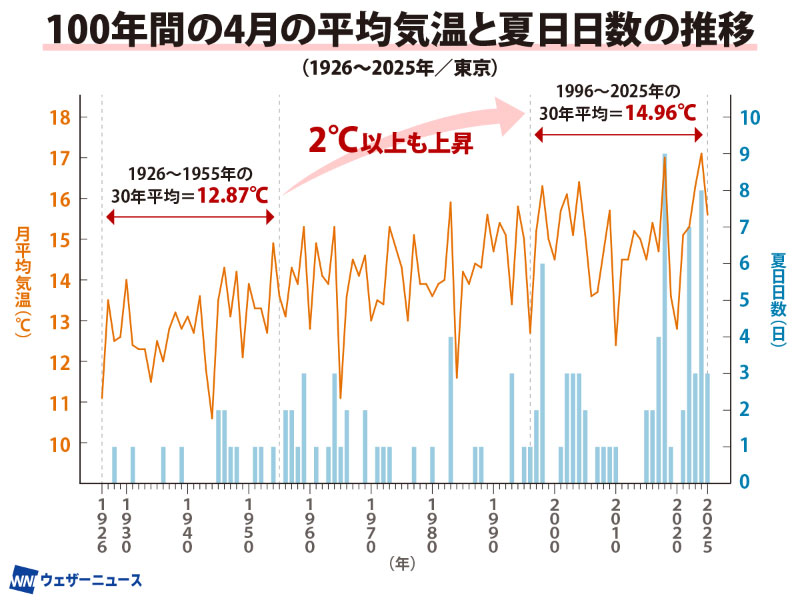 近年は4月の夏日が急激に増加