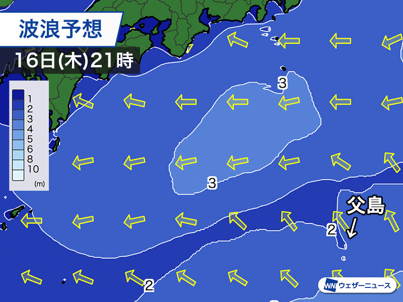 小笠原諸島からは離れた所を通り、勢力も徐々に落とす予想ではあるものの、高波や強風の影響は出てくる見通しです。