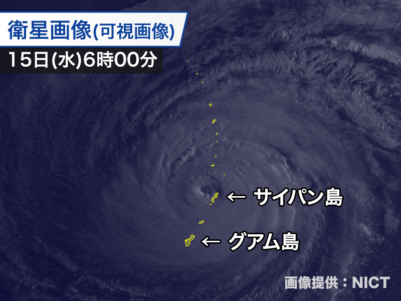 台風の動きが遅いため、雨量もかさんでいます。グアムでは昨日14日(火)の日降水量が167mmに達する大雨となっています。マリアナ諸島では明日16日(木)にかけて断続的に雨が強まり、特に今日いっぱいは大雨に警戒が必要です。