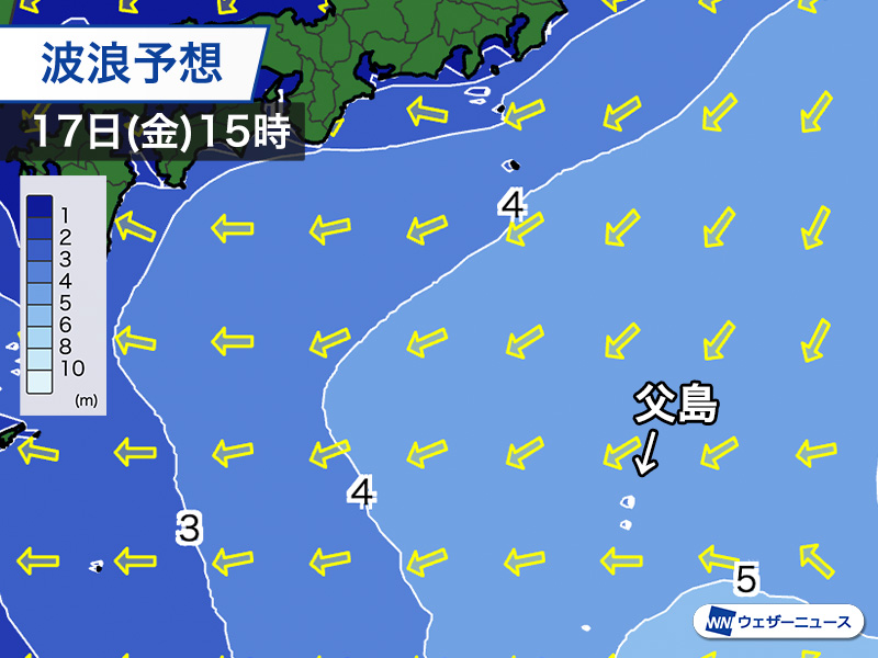 17日(金)は小笠原近海で4mの高波予想