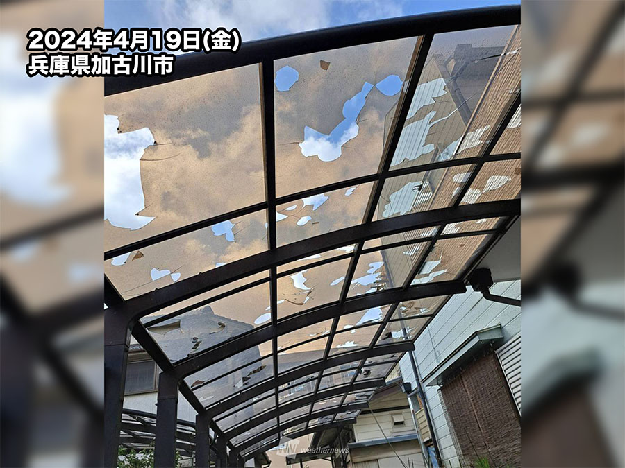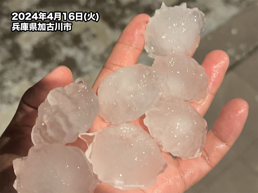 加古川市など兵庫県南部では、ゴルフボールやピンポン球に近いサイズの大きな雹の降った所がありました。