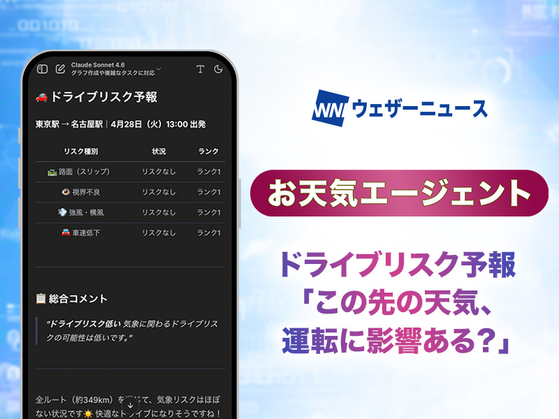 【おすすめ機能紹介】お天気エージェントの「ドライブリスク予報」