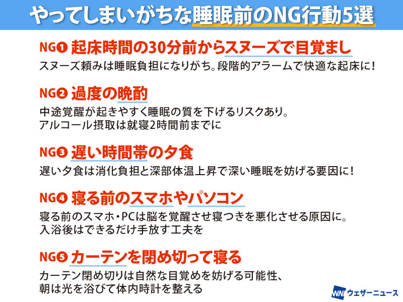 一方で、睡眠の専門家によると、こうした不調は天候だけでなく、日常の何気ない無意識の行動によって睡眠の質を下げてしまっているケースもあるといいます。詳しく教えていただきましょう。